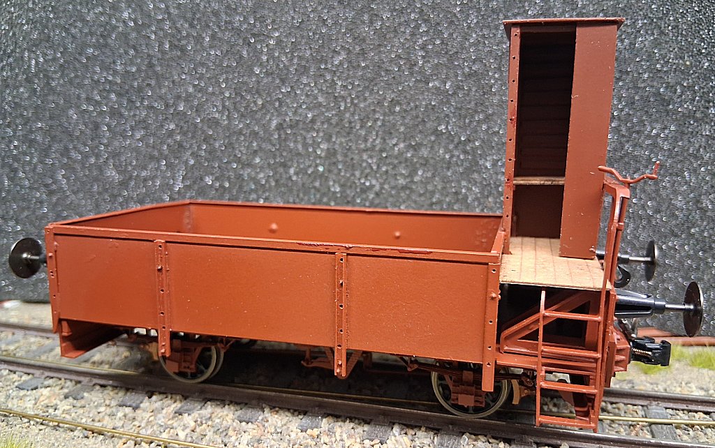 Auch das zweite Bremserhaus wurde aus Polystyrol gebaut und durfte - noch nicht komplett montiert - testweise auf den Wagen.