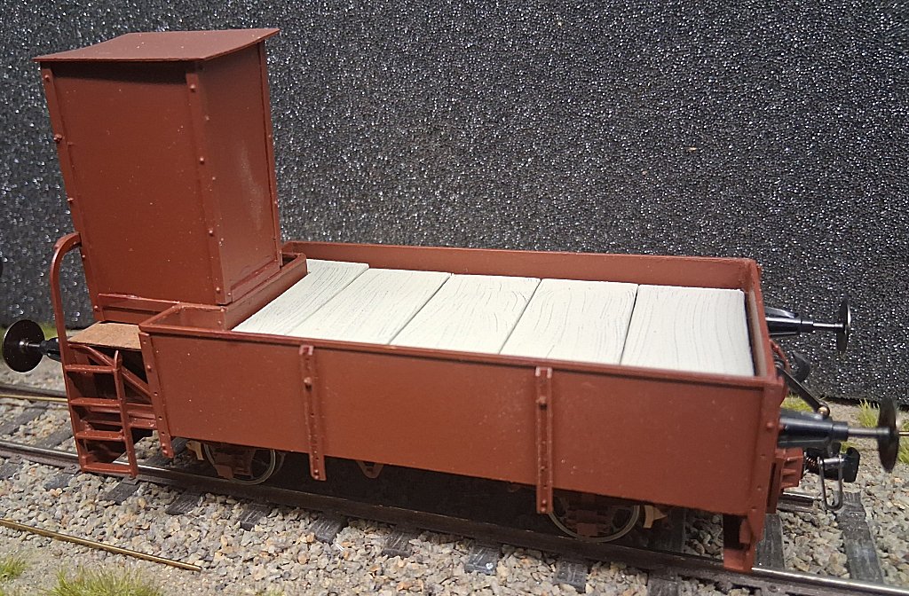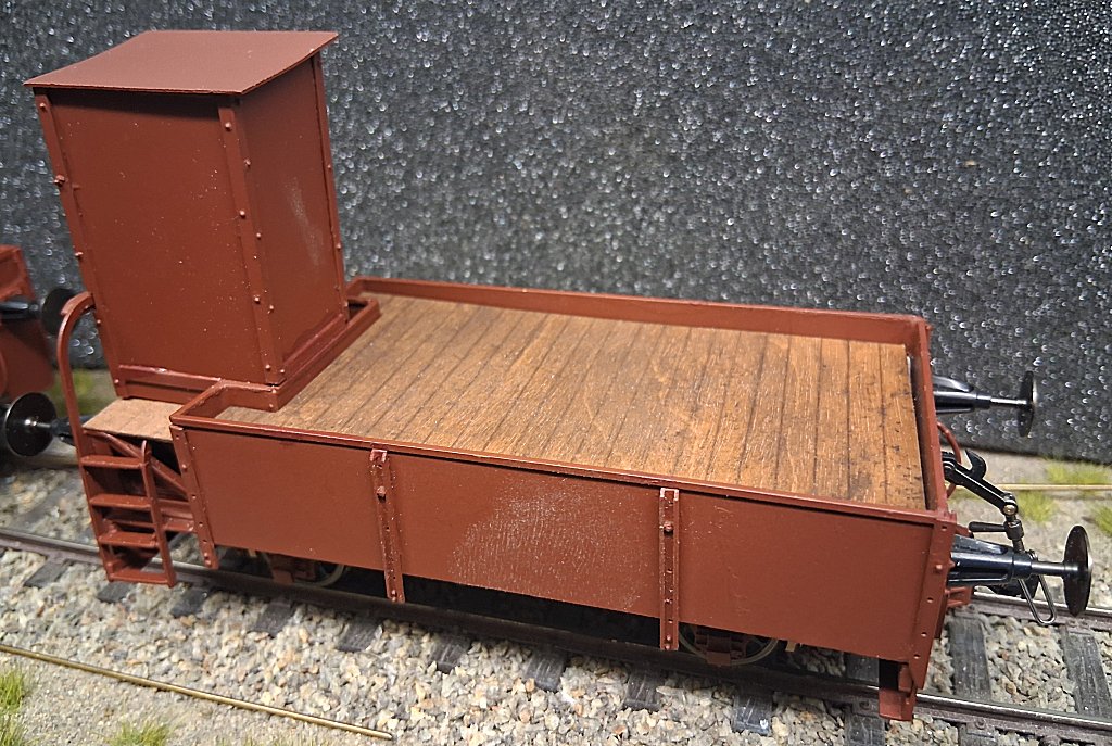 Nach der Lackierung wurde das Bremserhaus final montiert und wie schon zuvor beim ersten die Sitzfläche montiert. Diese besteht aus 0,5 mm Sperrholz, mit X-Acto-Messer graviert und mit Weather All verwittert.