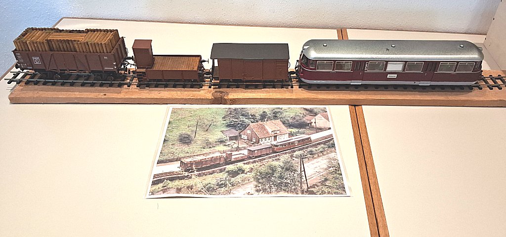Nachdem die beiden Pufferwagen fertig gestellt waren, konnte ich am 21.02.2026 anlässlich des Thüringer Spur Null Stammtisches, der diesmal in Fulda-Petersberg stattfand, eine Vorbildsituation nachstellen.